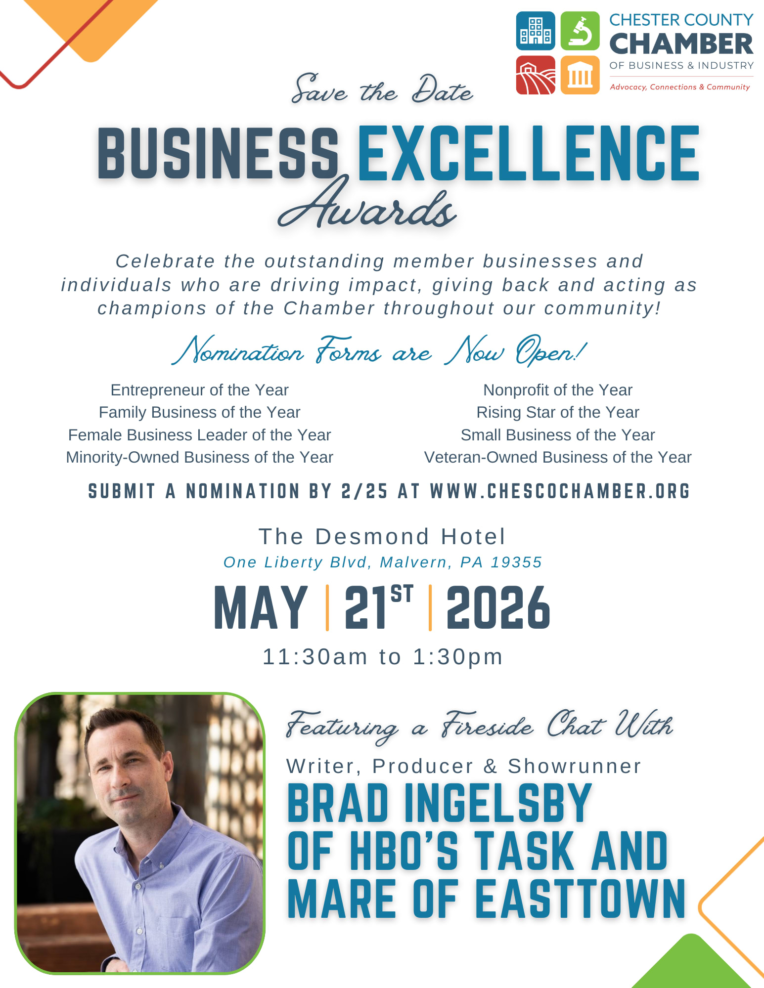 Must be a member in good standing with the Chester County Chamber of Business & Industry