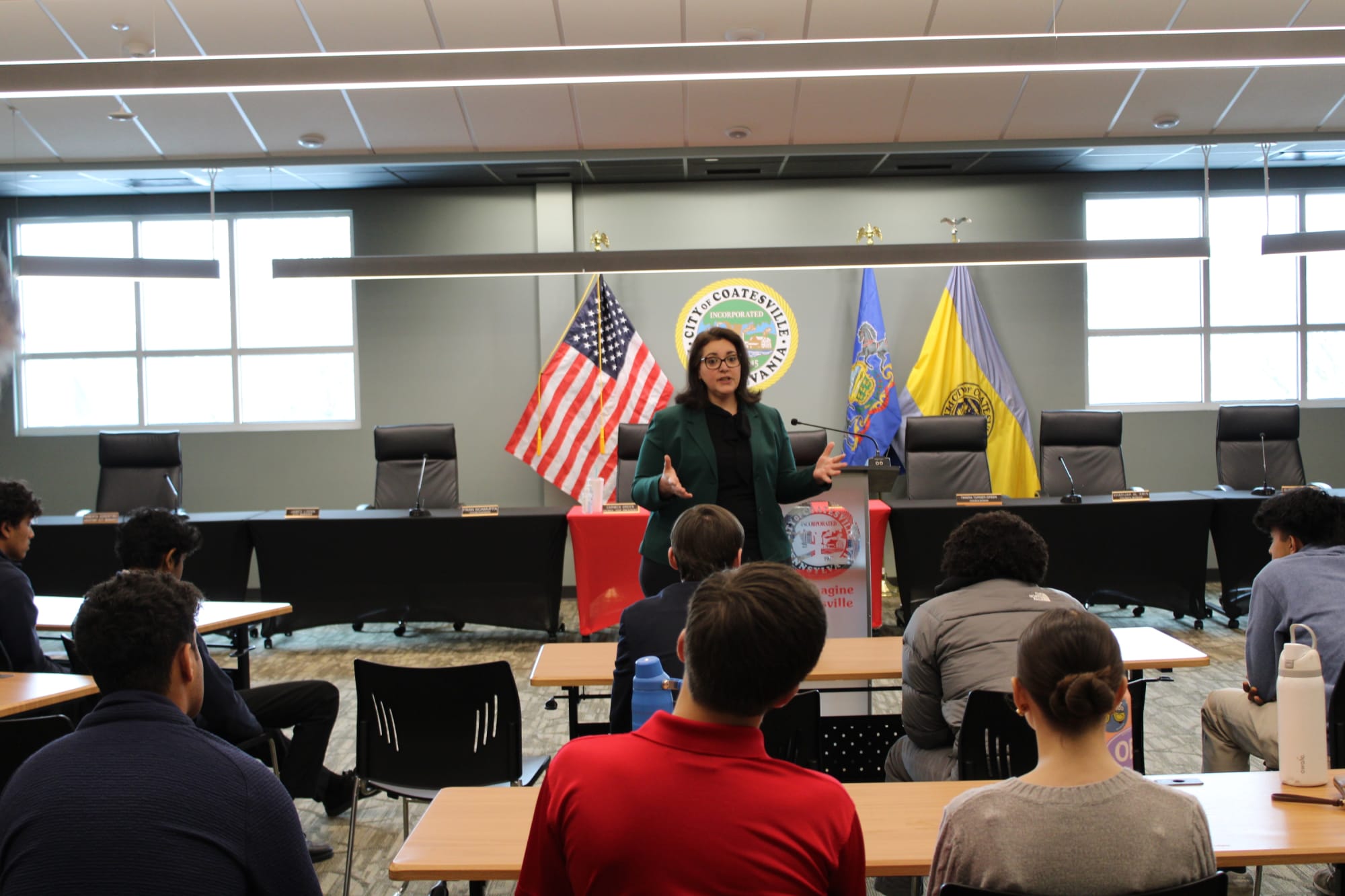 The students then heard from: Coatesville Fire Chief Peter Hum, Police Lieutenant Rodger Ollis, Jr., Coatesville Assistant City Manager Roberta Cosentino, and State Representative Dan Williams.