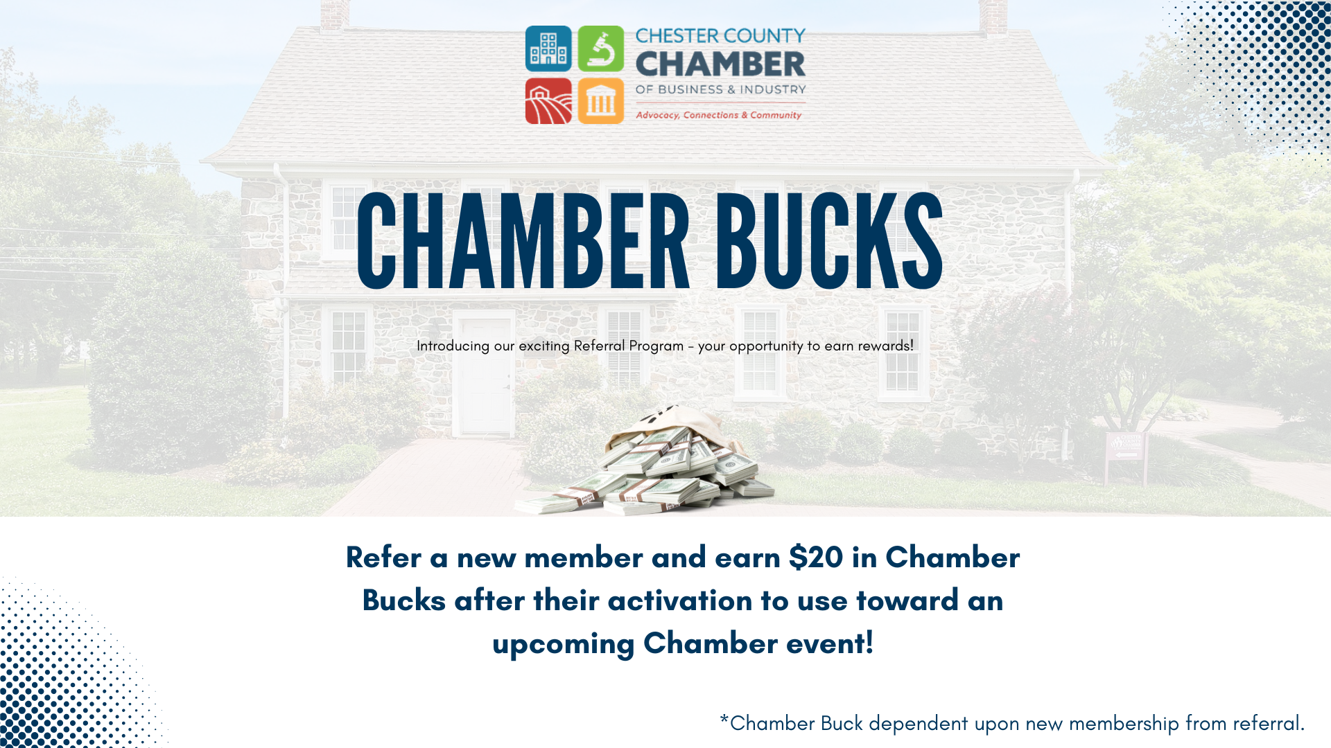 The Chamber Bucks Referral Program is an exciting new initiative by the Chester County Chamber of Business and Industry to reward current members for helping grow our business community.