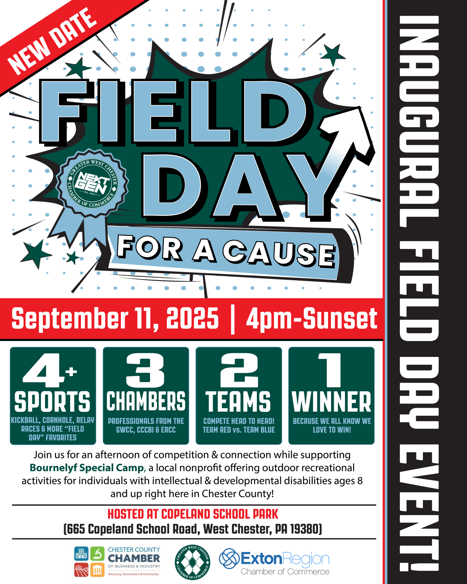 We are also excited to partner with the Greater West Chester Chamber of Commerce and Exton Region Chamber of Commerce to invite you to the Inaugural Field Day for a Cause!