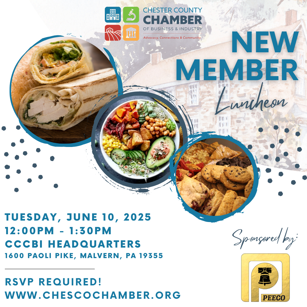 Open to NEW members of CCCBI. Please only one representative per business. If you're not a member but interested in learning more about us, please email Laura Ellis, Director of Member Engagement at ellis@chescochamber.org.