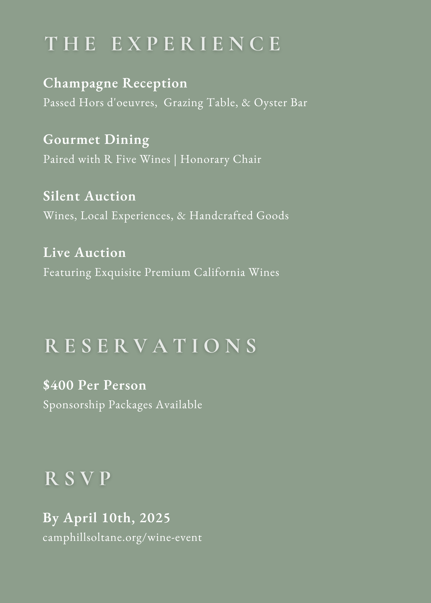 A Premium Wine Auction & Dining Experience Benefitting Adults with Intellectual Differences Through The Mission of Camphill Soltane